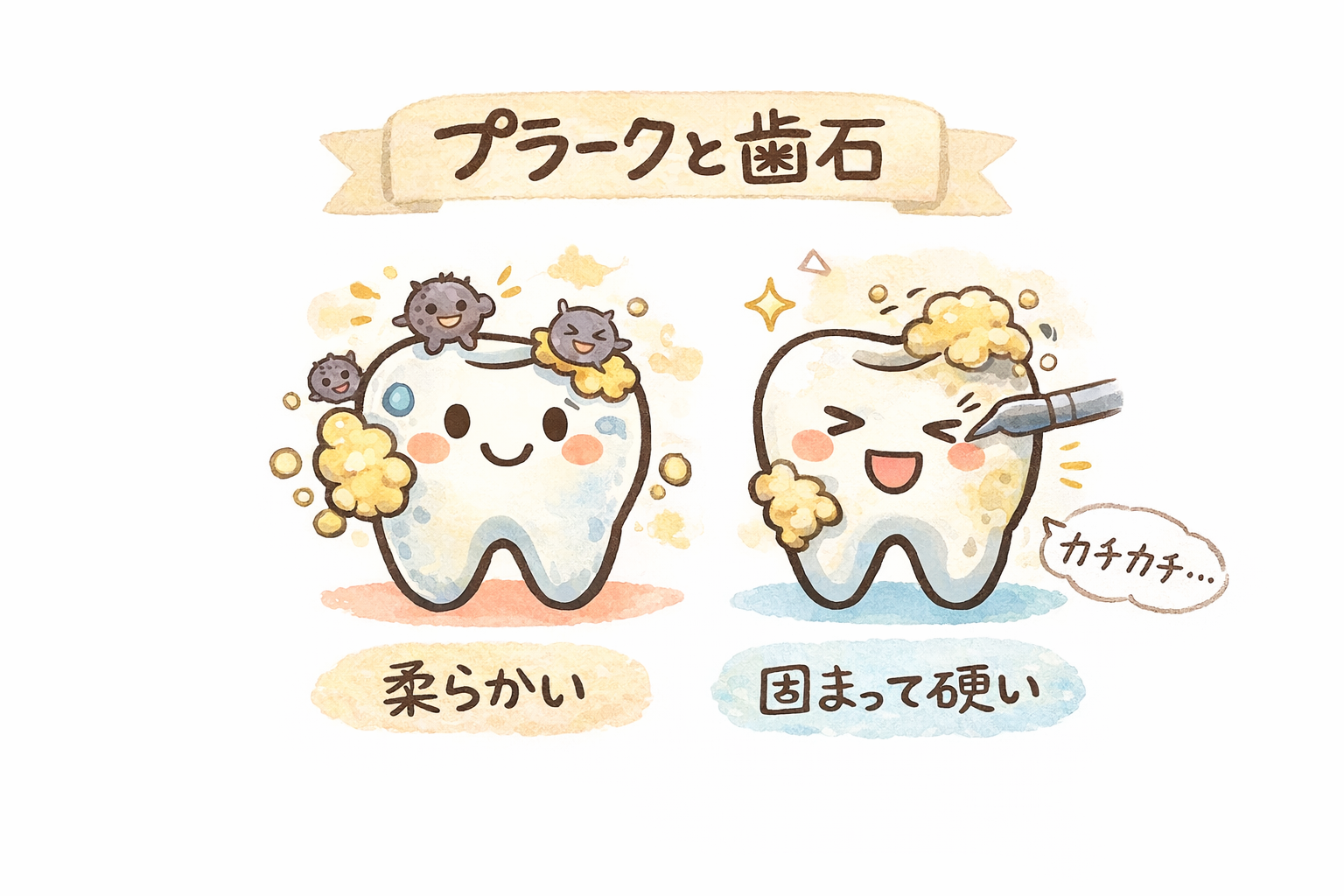 歯の表面に付着する黄白色の粘着性のあるもので「歯垢(しこう)」とも呼ばれます。